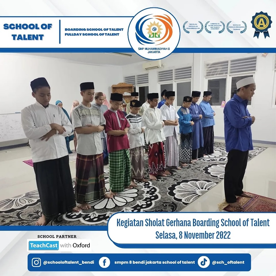 Alhamdulillah, Boarding School SMP Muhammadiyah 8 Jakarta melaksanakan sholat gerhana, Selasa 8 November 2022.